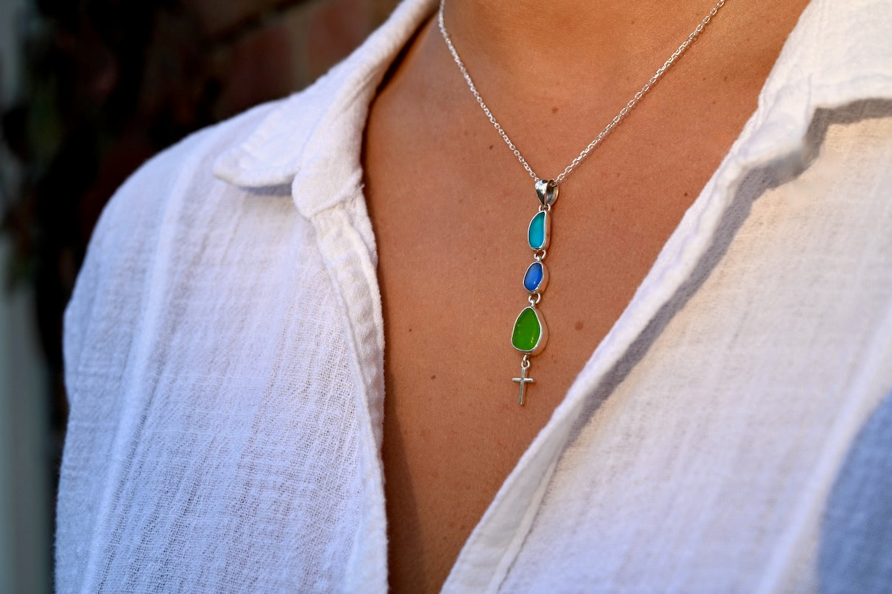sea glass pendant necklaces with 17" oval chain (3 choices)